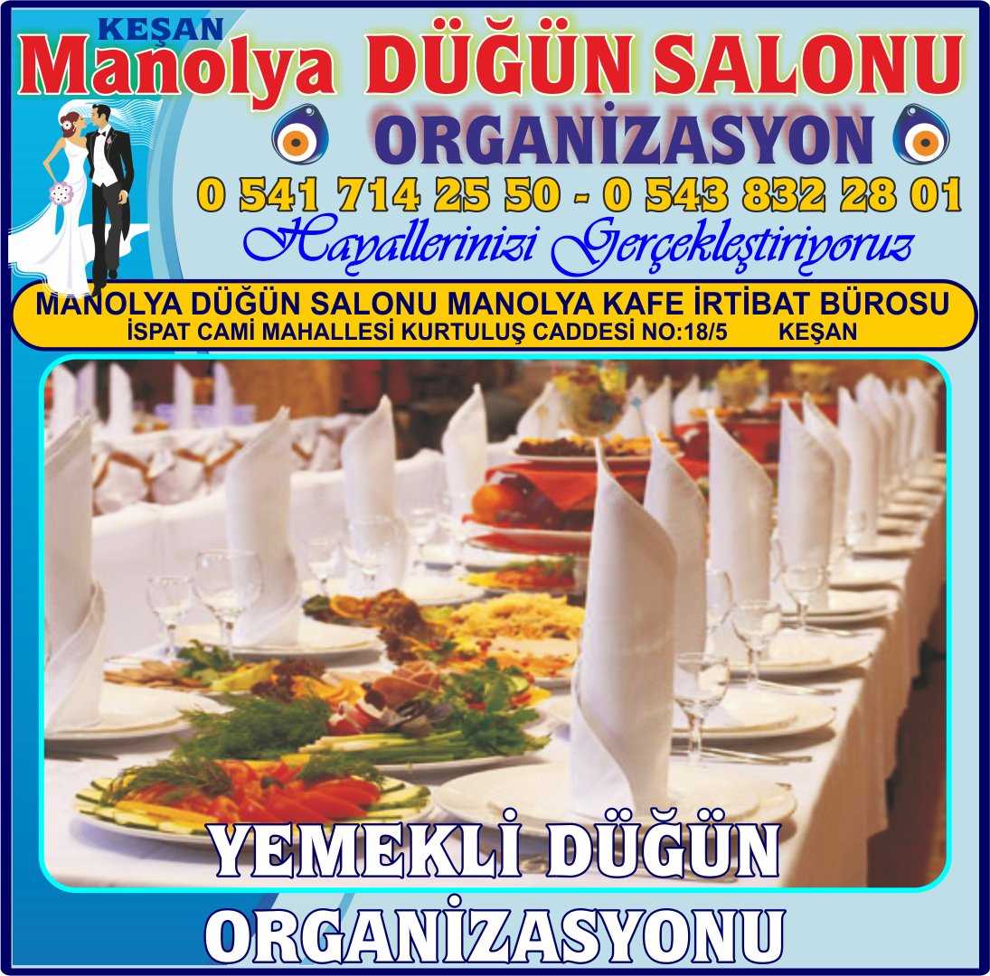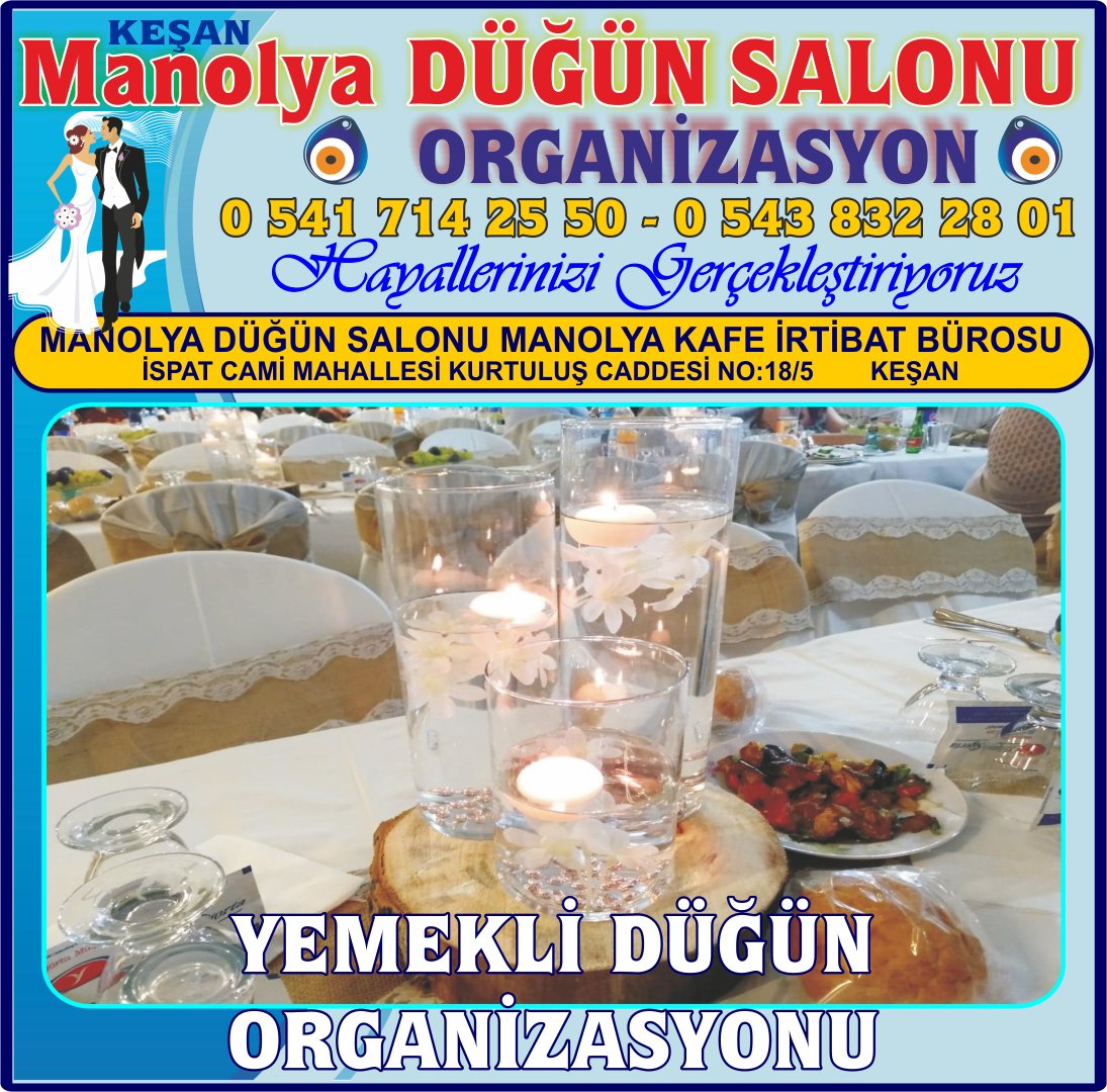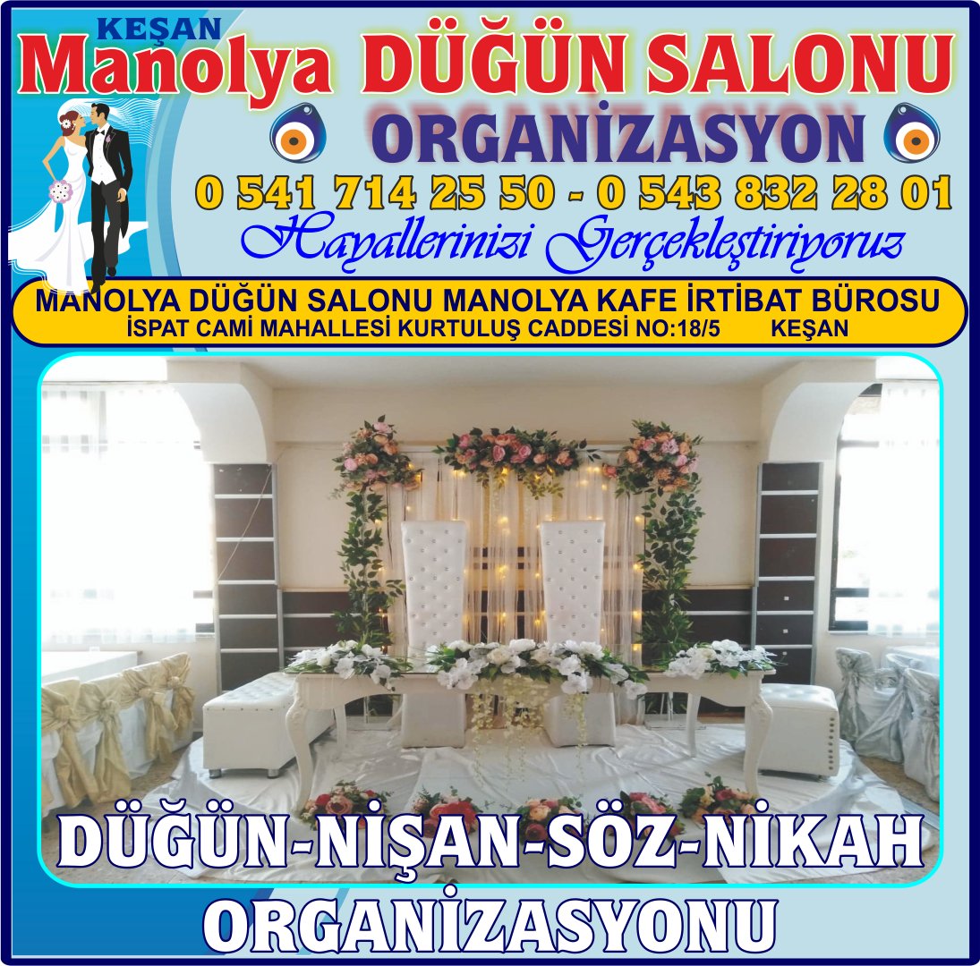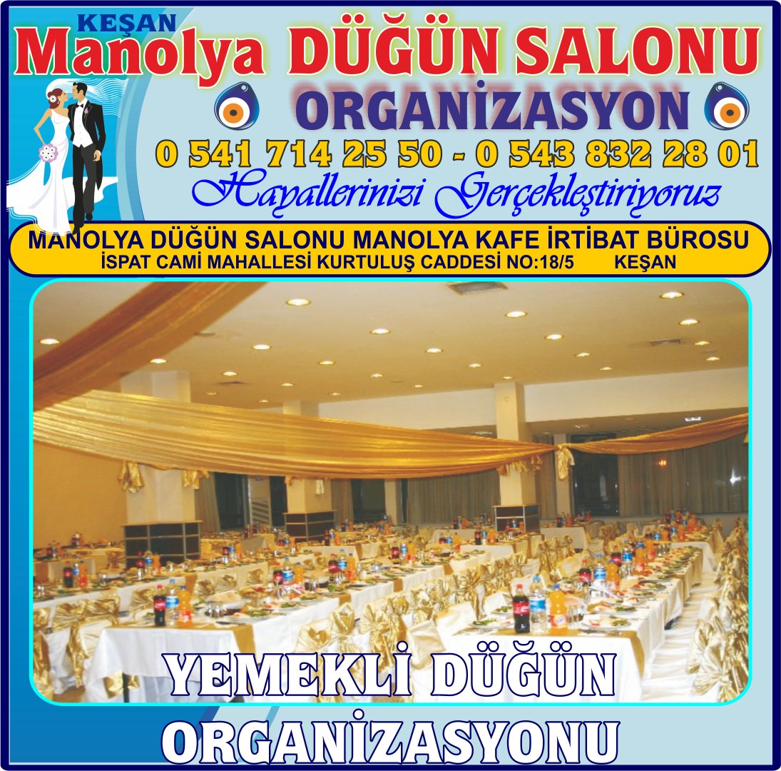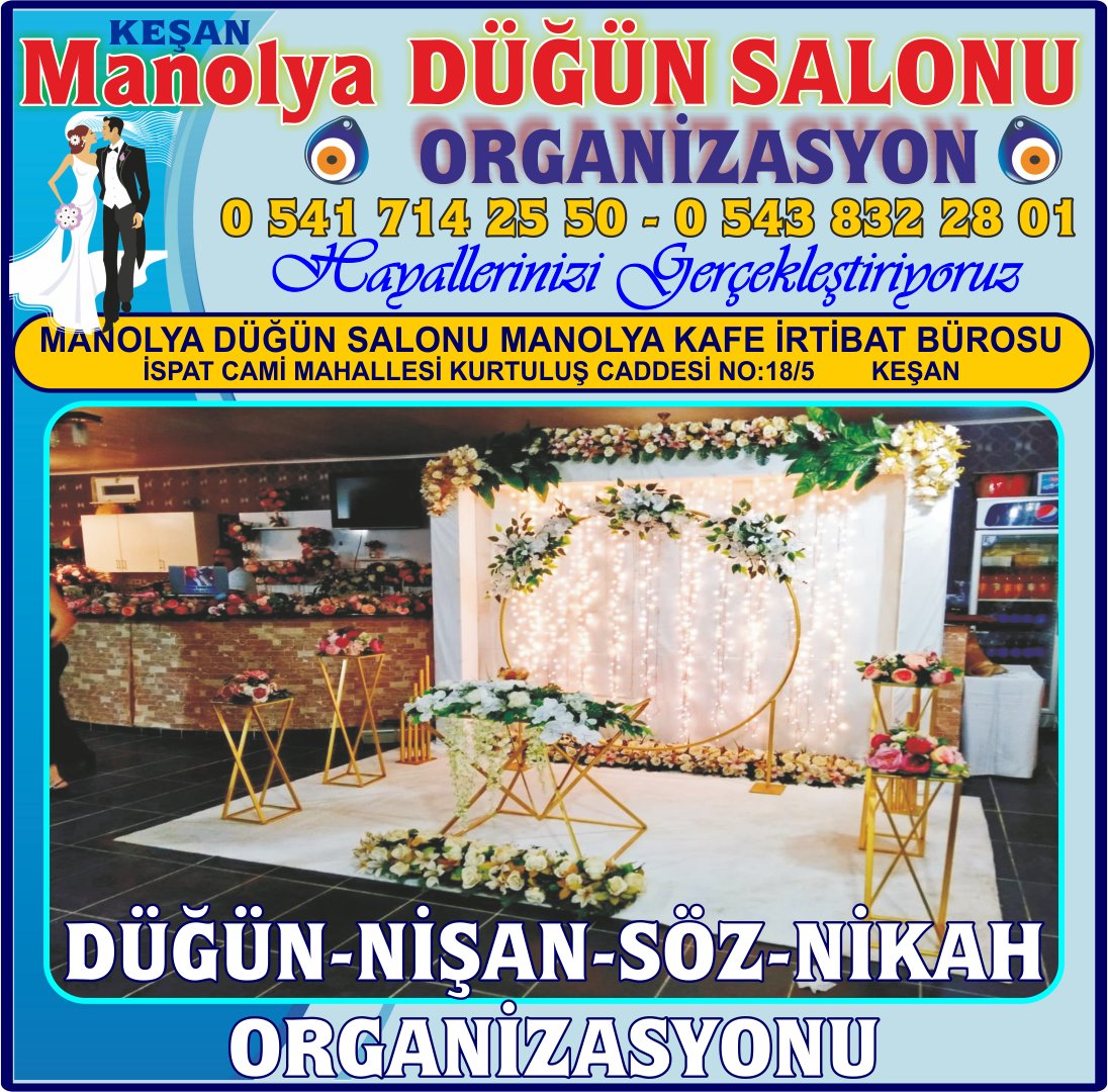 - Firma Adı: KEŞAN DÜĞÜN NİŞAN NİKAH ORGANİZASYONU SALONU MANOLYA